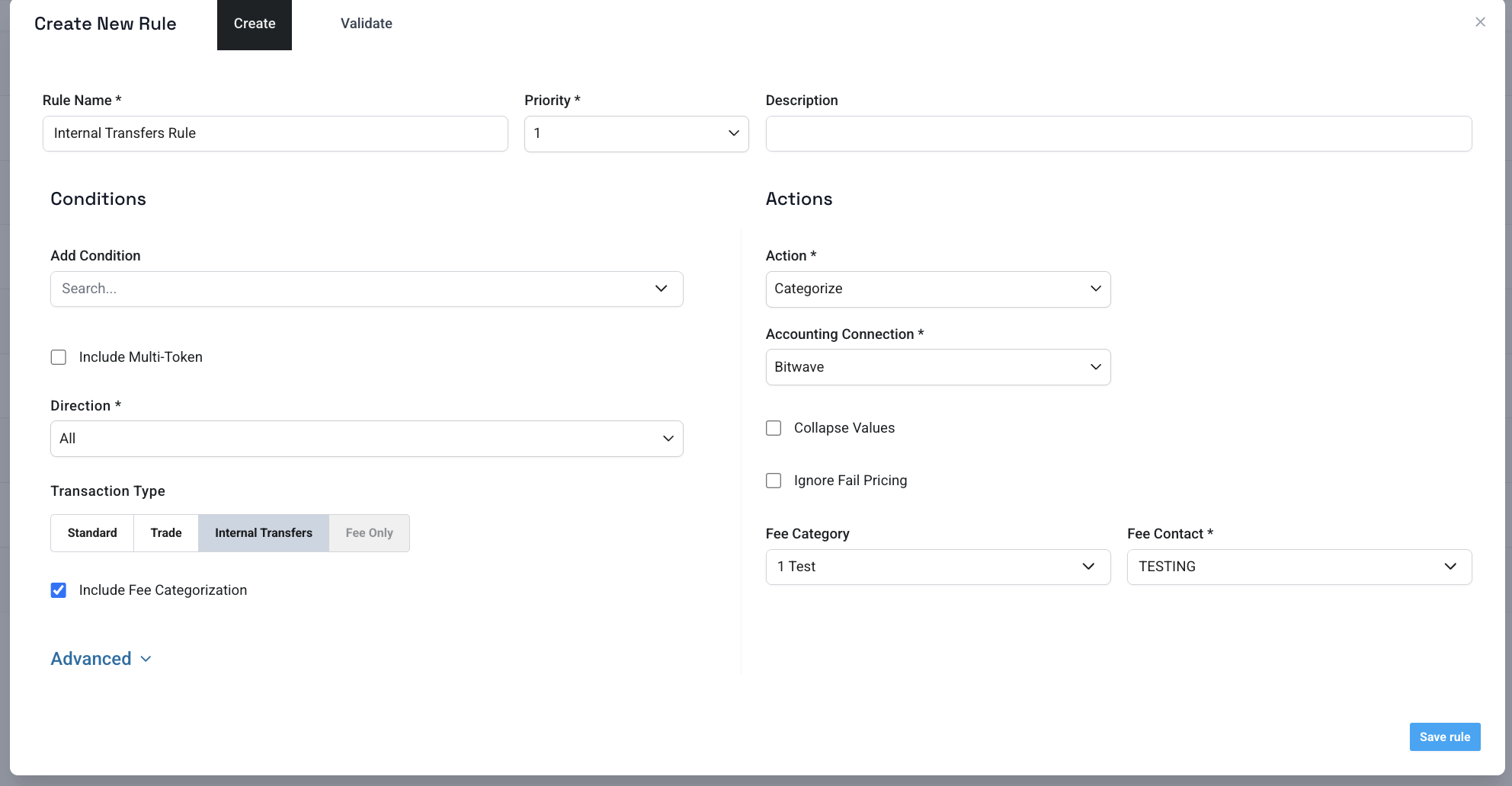- Internal Transfers Rule (wallet-to-wallet transfers)