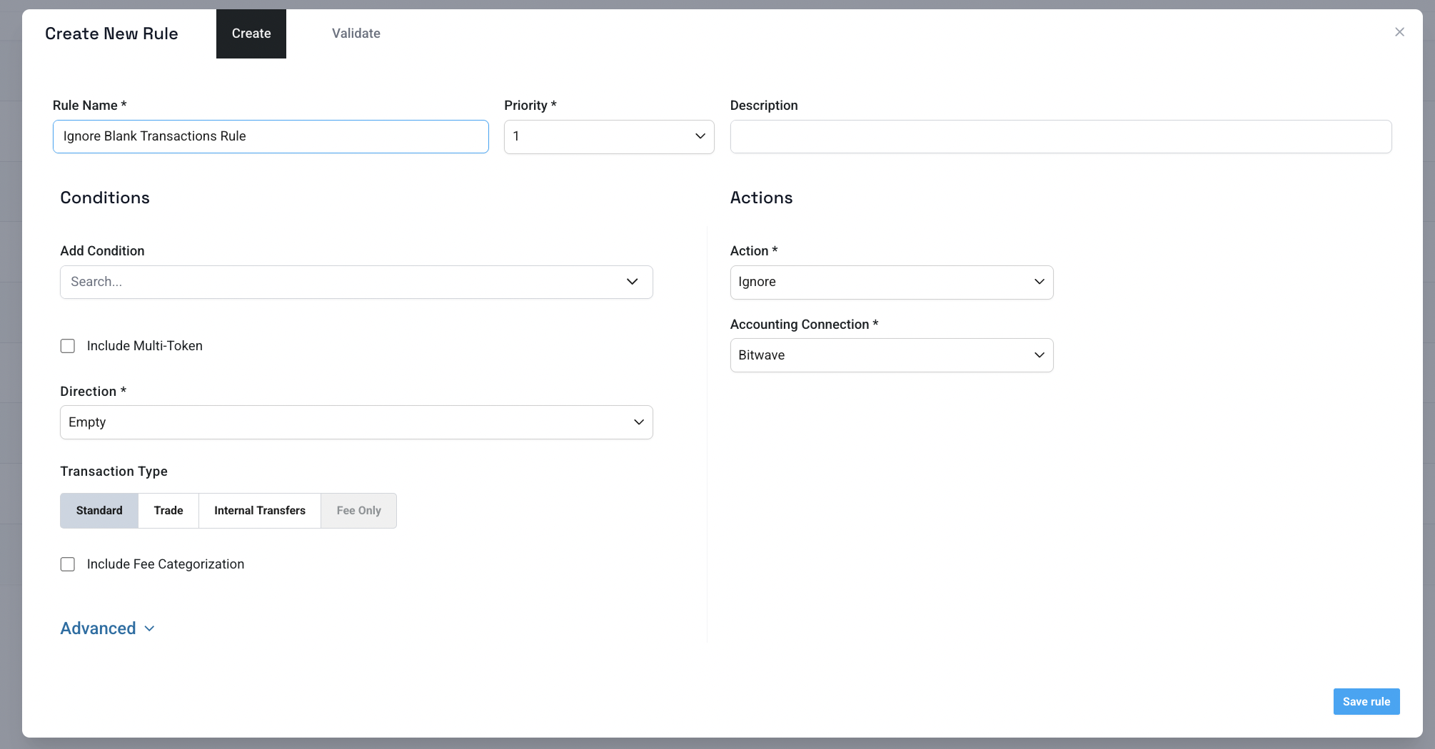 Coin - If the tnx only contains this token, the rule will be applied to it.