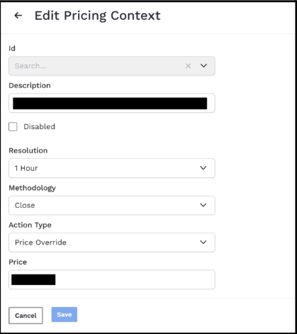 This context represents how pricing should be done once it is selected.
